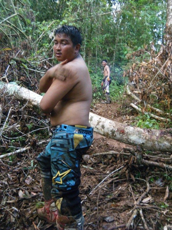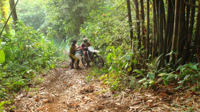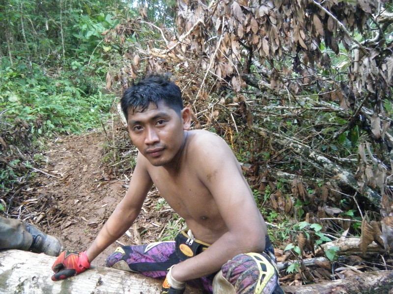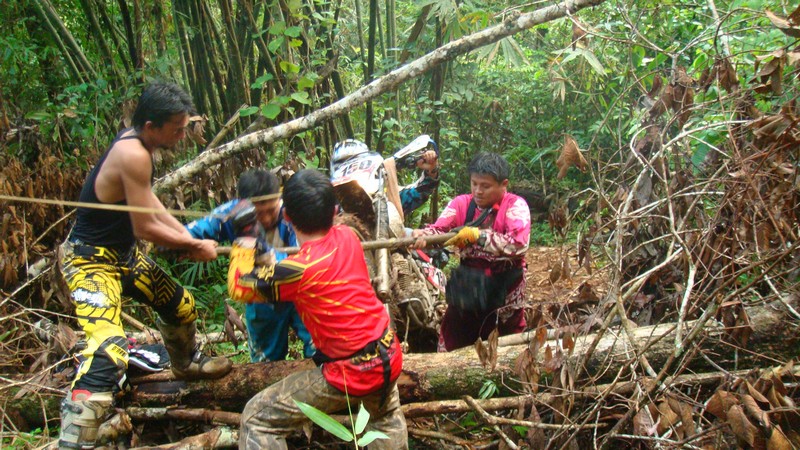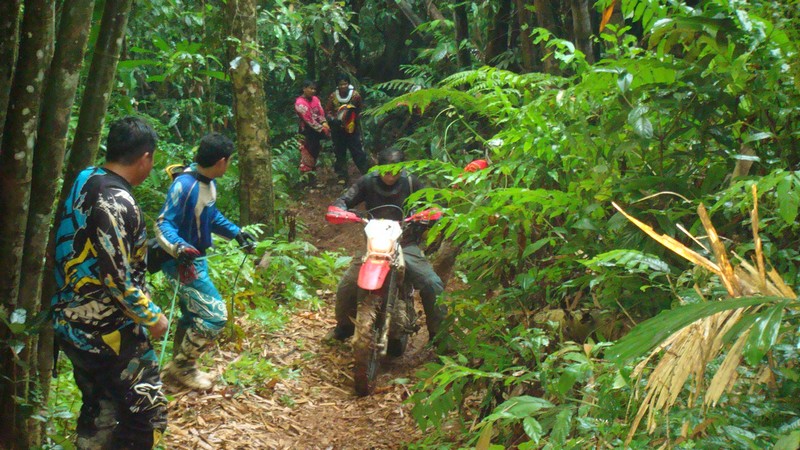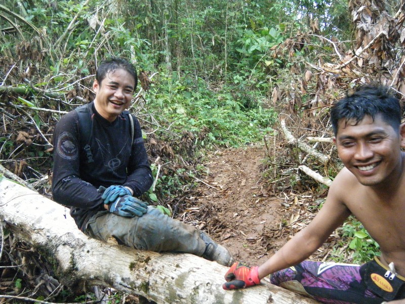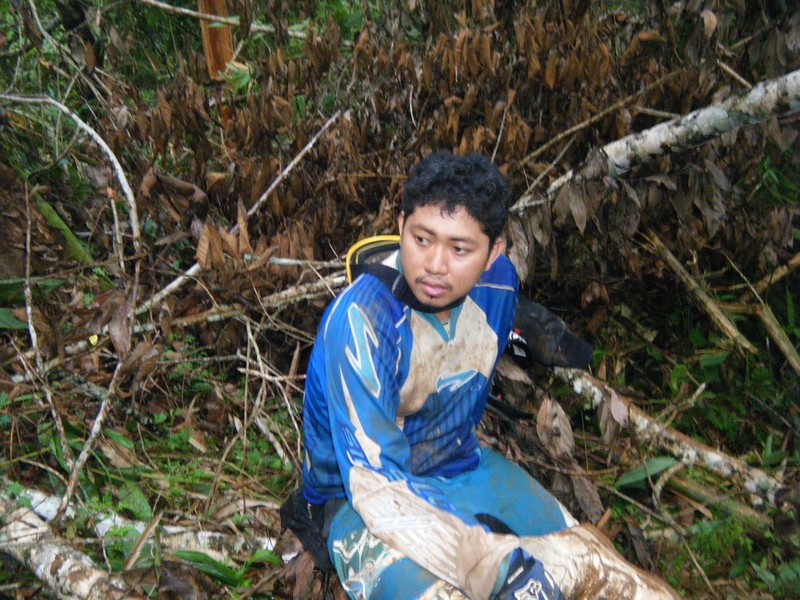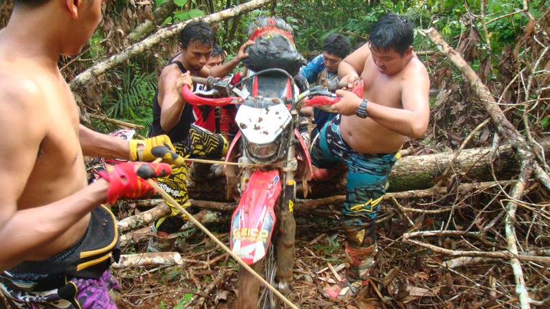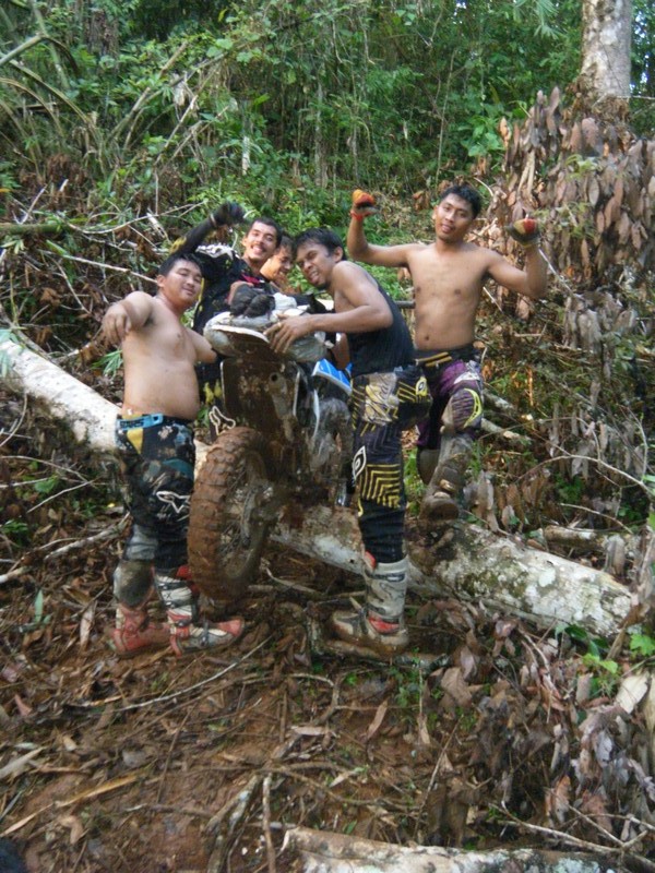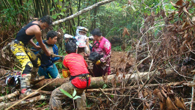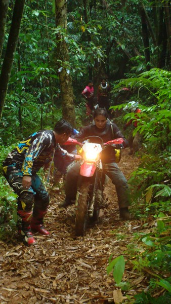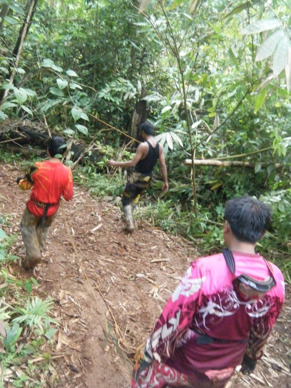 ข้างหน้ามีต้นไม้โค้นขวางทาง 2 ท่อนครับ....ที่สำคัญคือมันอยู่กลางเนินที่ลื่นนี่แหละ