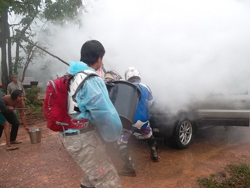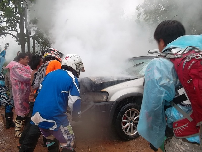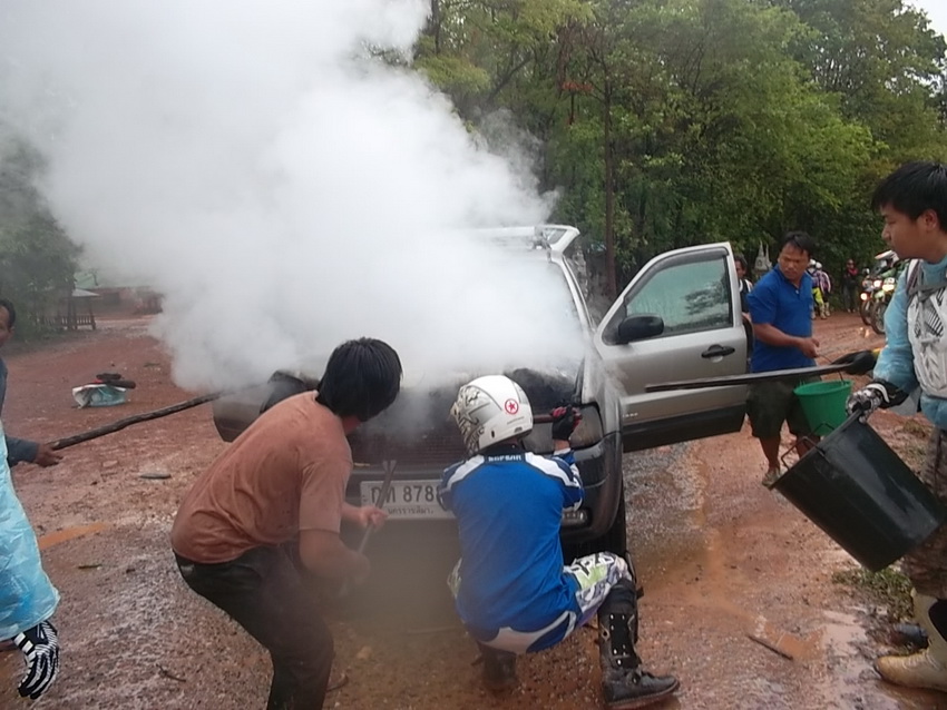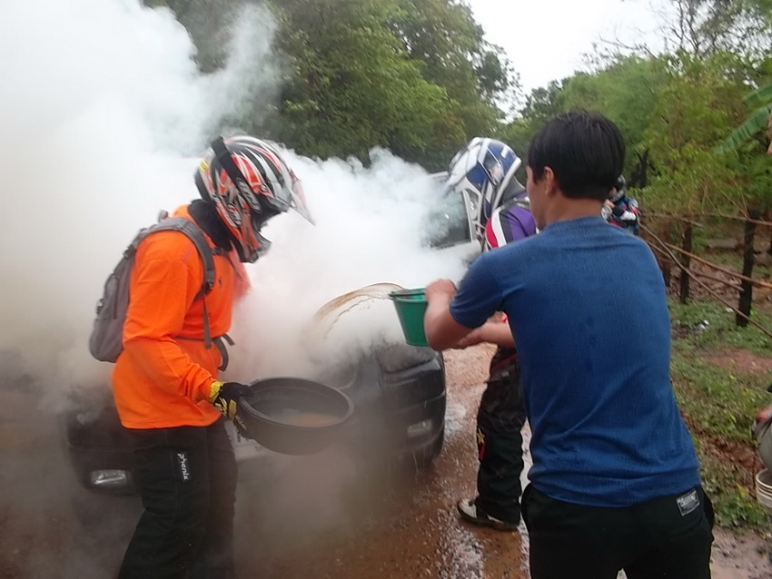 หลังจากนั้น เหตุการณ์ ก็เริ่มครี่คลาย! เมื่อพวกเราฯ รุมกัน เปิด ( ฝา)"กระโปรง" รถได้.................