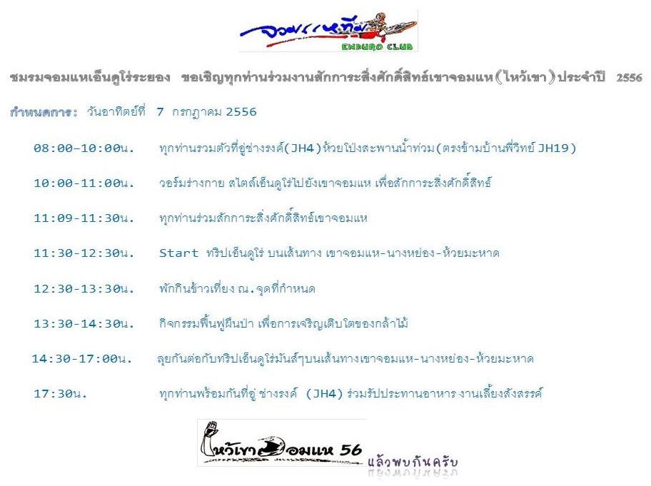 กราบเรียนเชิญพี่น้องที่ชอบความลำบากทุกท่านทุกกลุ่มทุกชมรม ในวันอาทิตย์ที่ 7 กค ที่จะถึงนี้ ชมรมจอมแหทีม มีงานประจำปี งานไหว้เขาจอมแห ที่ทางชมรมจัดทำอย่างต่อเนื้องมาเป็นเวลาหลายปีแล้ว ขออนุญาติเรียนเชิญพี่น้องทุกๆท่านมารวมงานกันด้วยครับ