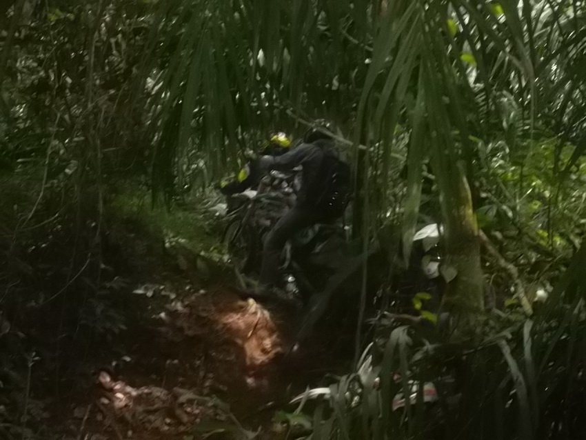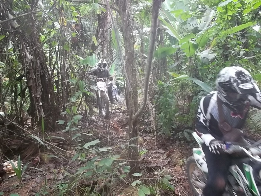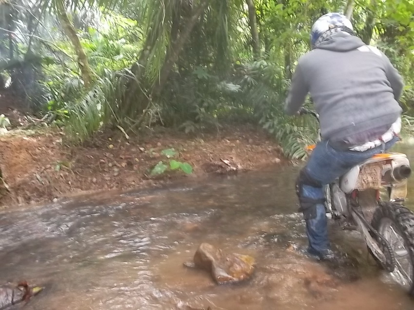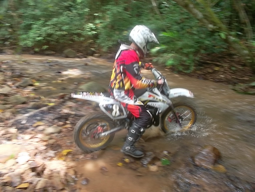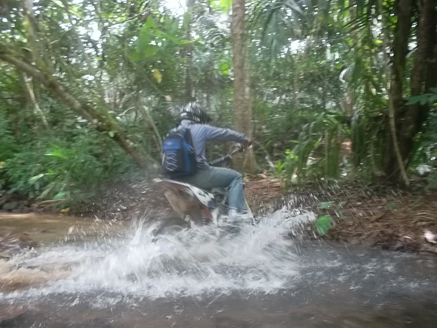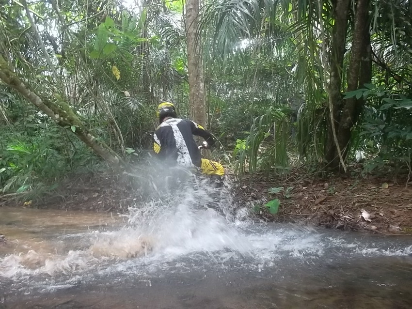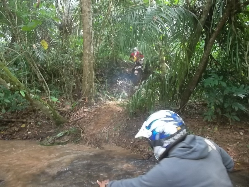 เห็นเล็ก ๆ แบบนั้นเนี๊ย! ไวเหมือนปรอท แต่ด้วยสปิริต ของผู้นำทาง จึงต้องจำใจ ปาดฯขึ้นไปนำฯ.............และแล้วก็มาถึงทางลง ที่เหมือน บันได สามขั้น ก่อนลงห้วย.........แสดงแบบโดย ผมเอง ส่วนตากล้อง คือมิสเตอร์เจฟฯ........