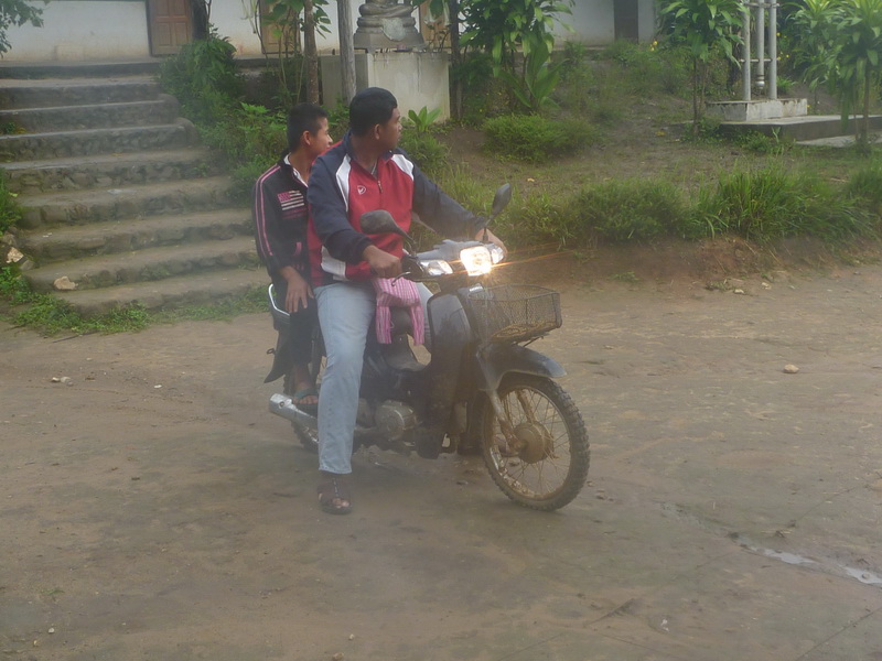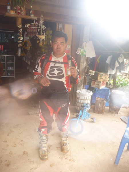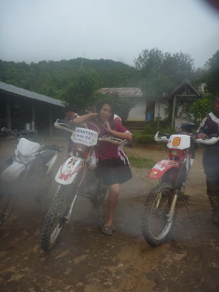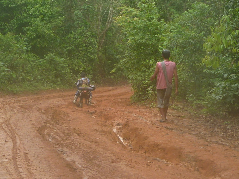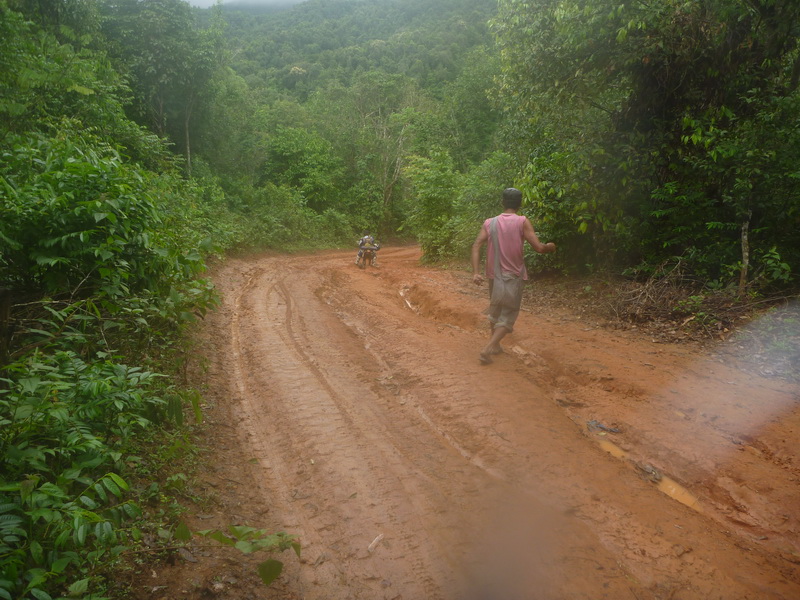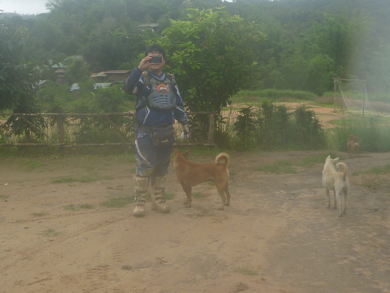 ชาวบ้านท่านนี้เมื่อกี้ช่วยยกรถที่หมู่บ้านที่ผ่านมา ตอนนี้เดินมาจะทันอีกแย้ว คริ คริ