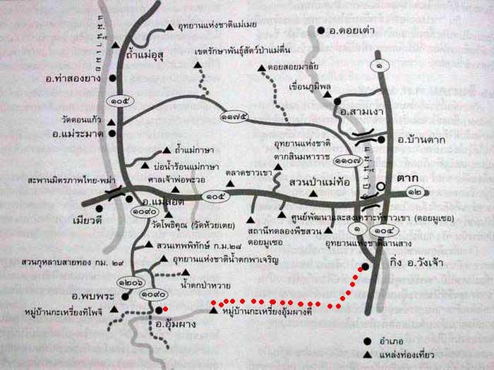 เราจะออกเดินทางจาก อช.คลองวังเจ้า ข้ามลำหว้ยเล็ก 2 ห้วย ลัดเลาะผ่านเส้นทางแนวกันไฟป่า ขับผ่านทางเสือผ่าน ช้างผ่าน แปลงไร่ข้าวโพด ระยะทางประมาณ 25 กม.จะไปทะลุ หมู่บ้านกลางป่าแห่งหนึ่ง ที่นี่มีน้ำมันเบนซินขายด้วย ผ่านจุดนี้ไปอีก จะขับตามทางรถไถนา สองฝากข้างทางมีไร่ข้าวโพด กับบ้านพักชั่วคราวของชาวบ้านเป็นช่วงๆ ทางดี เดินคันเร่งได้ ระยะประมาณ 20 กม ก็จะเจอ หมู่บ้านกลางป่า(ข้าวโพด)หมู่บ้านที่สอง ที่นี่ก็มีน้ำมันเบนซินขายเช่นกัน