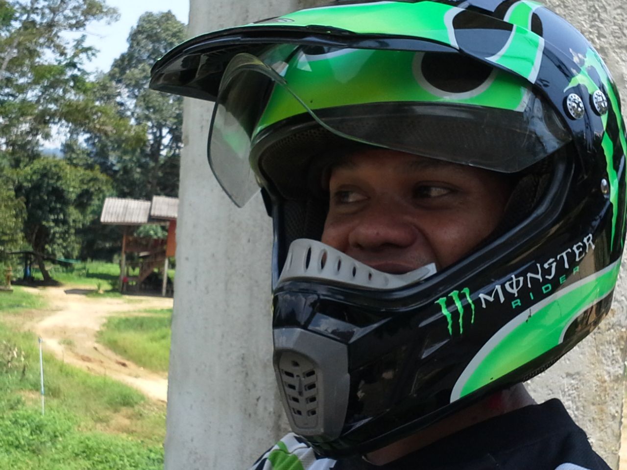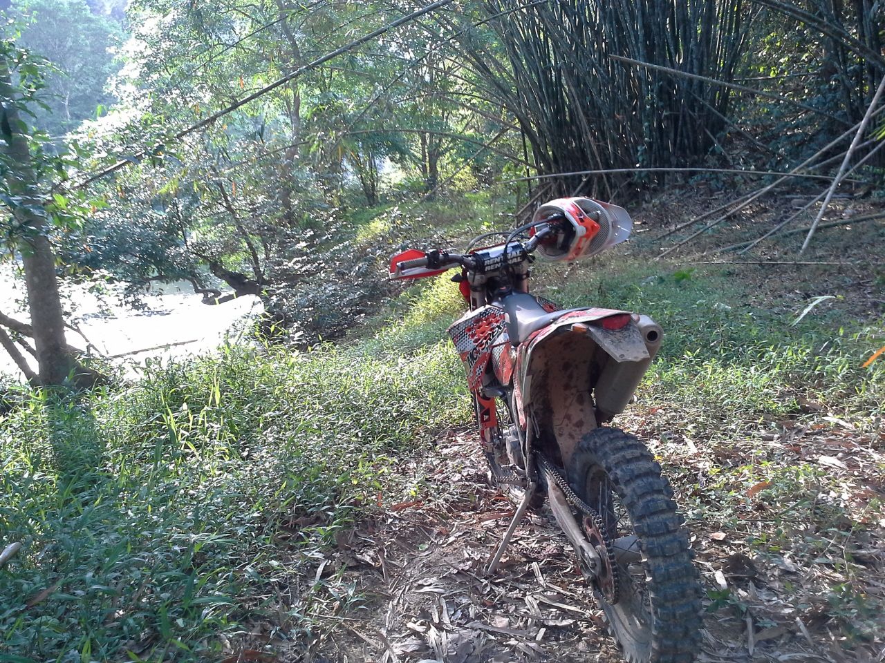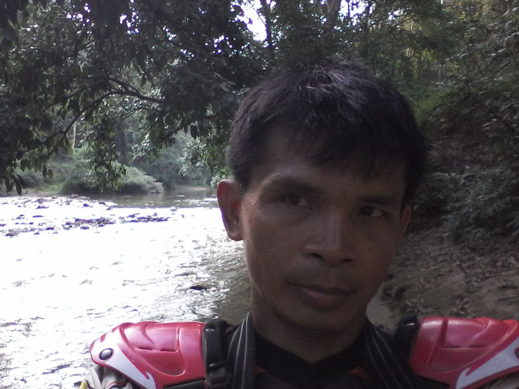 ไม่อยาก โชว์ หน้าตาฯ แต่ ถ่าย ไว้เป็น หลักฐาน ให้พรรคพวกดู ว่า ได้เข้ามา ถึงแล้ว ณ. จุดปล่อยตัว ของการ ล่องแพ ที่นักท่อง เทียว ที่ชอบผจญภัย ในการล่องแพ ชอบมา (กะเจ้าหน้าที่ พร้อม อาวุธ)............แต่ คราวนี้ ผมต้องขี่ ตลุย ฝ่า ความรก ของเส้นทาง มาคันเดียว...และ มารู้ ที่หลัง ว่า พรรคพวก อีก สามคัน พากัน ถอยหลัง ก็ เพราะ ขี้ช้างป่า สี่ห้า กอง ที่ ขวางทาง อยู่นั่นเอง!...........