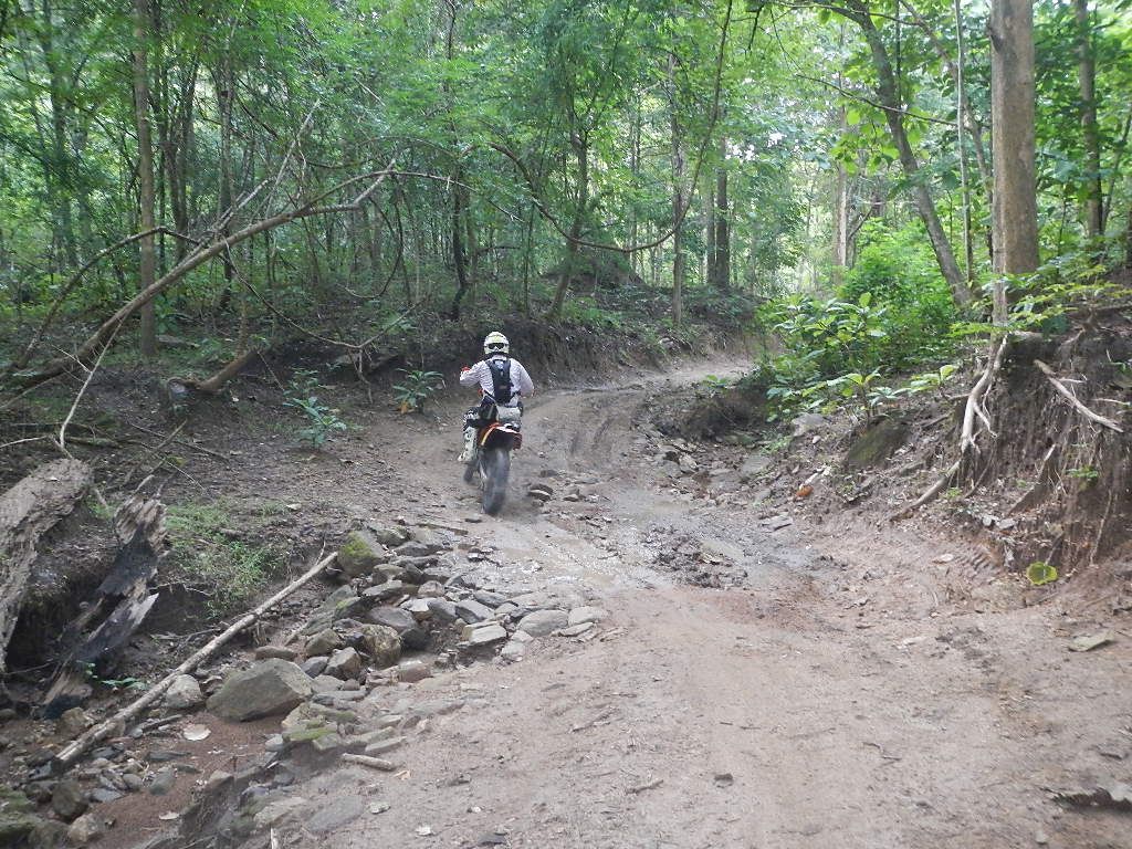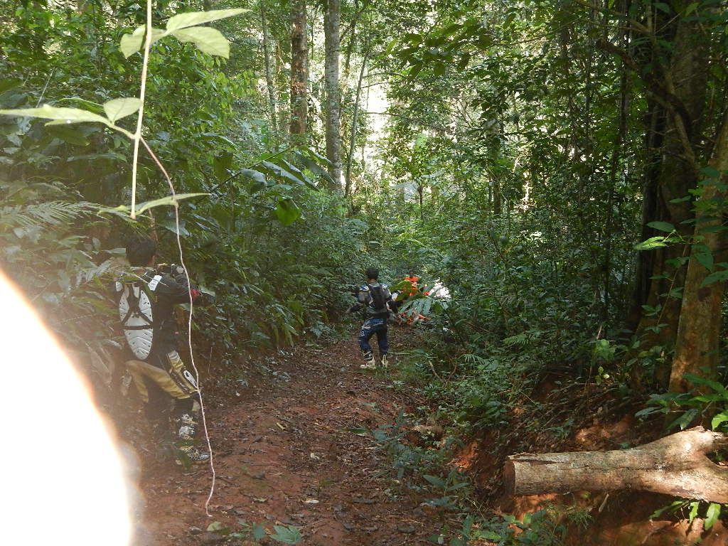 ถึงทางชัน และลื่นมากๆ ปกคลุมไปด้วยใบไม้ และ สายน้ำที่คั้งค้างมาแต่นมนาน
