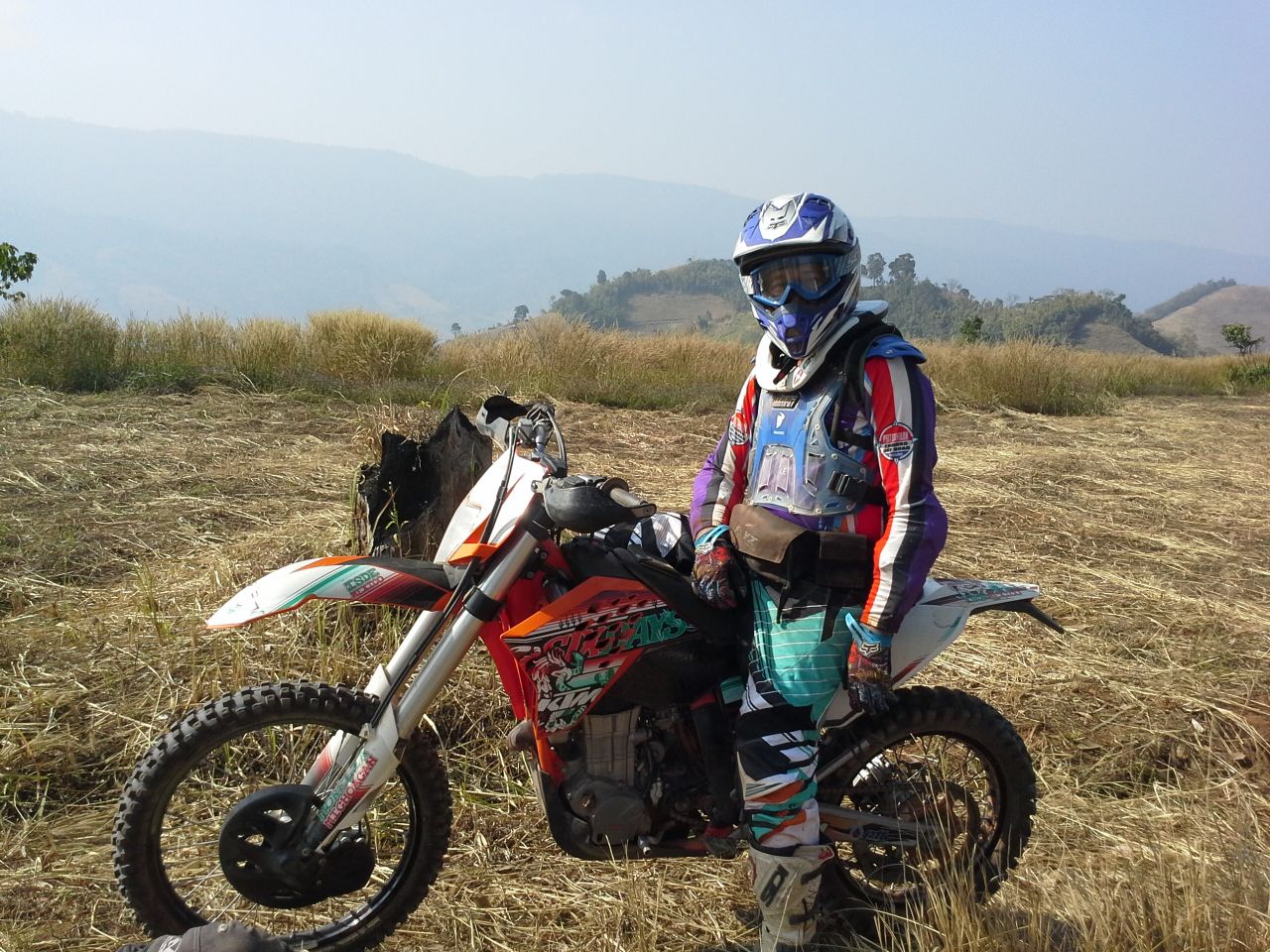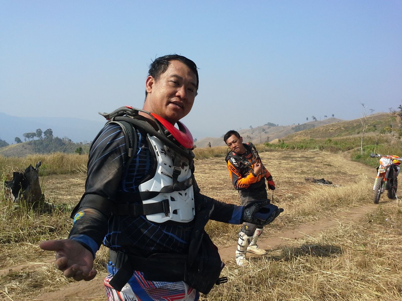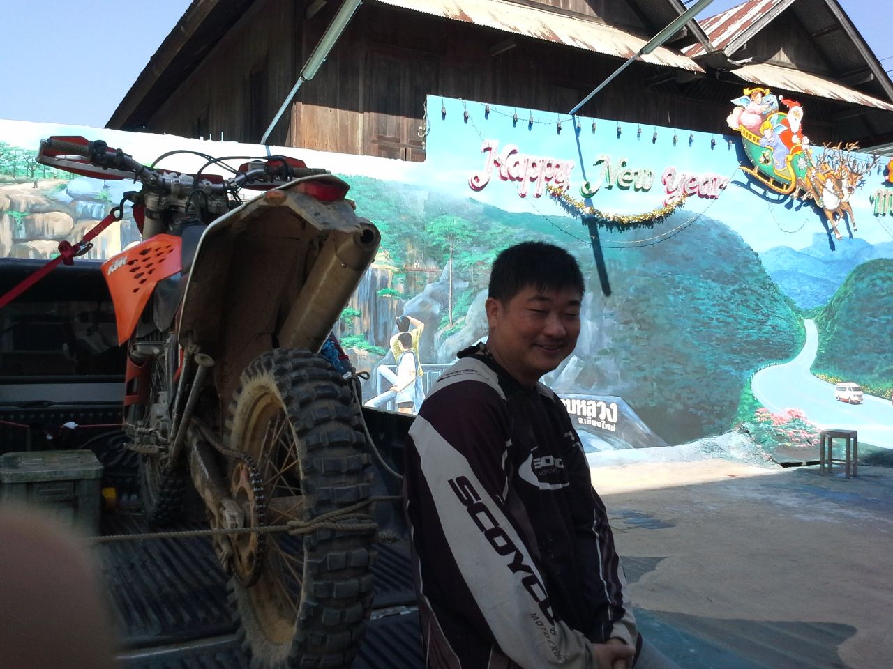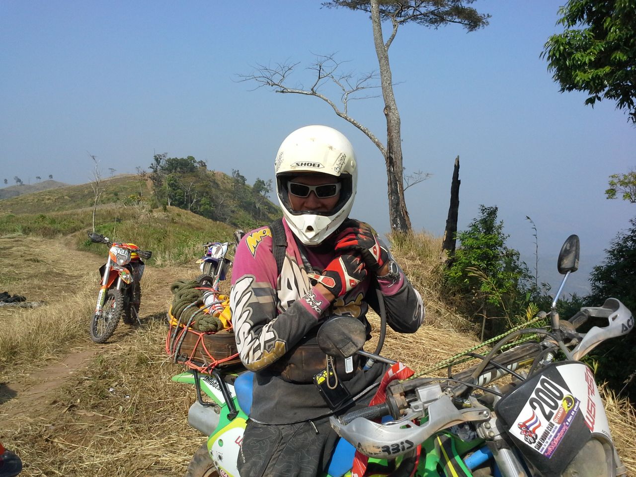ที่หน้าโรงแรมฯ ที่พัก ก่อนการ ร่ำลาฯ กับ มิตร สหาย ที่ นับถือ เป็น อาจารย์ ฯ ท่าน หนึ่ง กะการ แนะนำ สอนสั่ง ในเรื่อง การขี่เอ็น ฯ ใน แบบ และ ลีลา ที่ บ้านเราเพิ่ง เริ่มกันไม่นาน คือ การขี่ข้ามสิ่งกีดขวาง ที่ในยุค แรก ๆ ชาวเอ็น ภาคเหนือ บางท่าน อาจรู้จักดี.....เขาคือ ....นพปายฯ.......