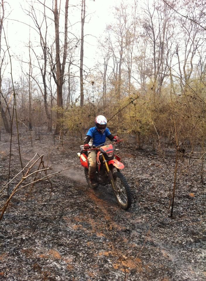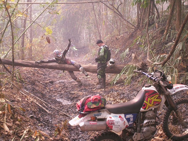 มาได้สักพักก็เจอด่านแรก..Soft..Soft..จุดนี้จะต้องแทร็กขึ้นเนินด้านขวาเพื่ออ้อมท่อนไม้..และต้องแทร็กขึ้นเนินอีกครั้ง..ท่านเลขาพี่ศร..ของเราควบเจ้า XR ยกล้อบนเนินมาจอดขวางคู่ขนาดกับท่อนไม้พอดีเลย..สู๊ดยอด..