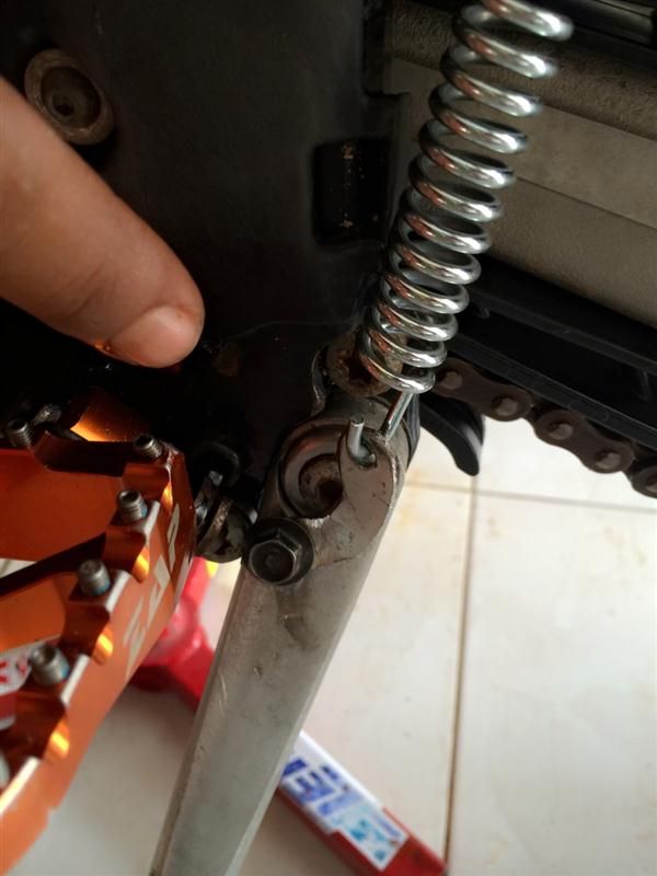 ความจริงไม่อยากโชว์ งานไม่เนียน ให้ร้านมอไซค์หน้าบ้านทำหูยึดสปริง ว่างๆจะให้โรงกลึงทำสวยๆ..............ส่วนสปริงเอาของโนวา สริปงขาตั้งคู่ ใช้ได้เหมือนกัน