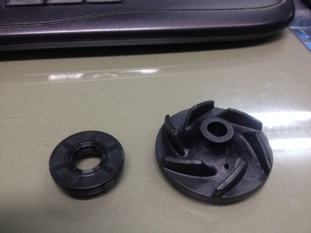 หมั่นสังเกต ถ้าน้ำบ้วนออกข้างแคล้งขวา แปลว่าซีลปั๊มน้ำรั่ว รื้อง่าย ประเก็นก็ตัดเอง แต่ๆๆๆๆๆ ซีลแพงหน่อย 800 สั่งที่ "จง หาดใหญ่" และหมั่นสังเกตใบพัดด้วยถ้าร้าวๆๆๆๆๆก็สั่งรอเรย 1,600 บาท