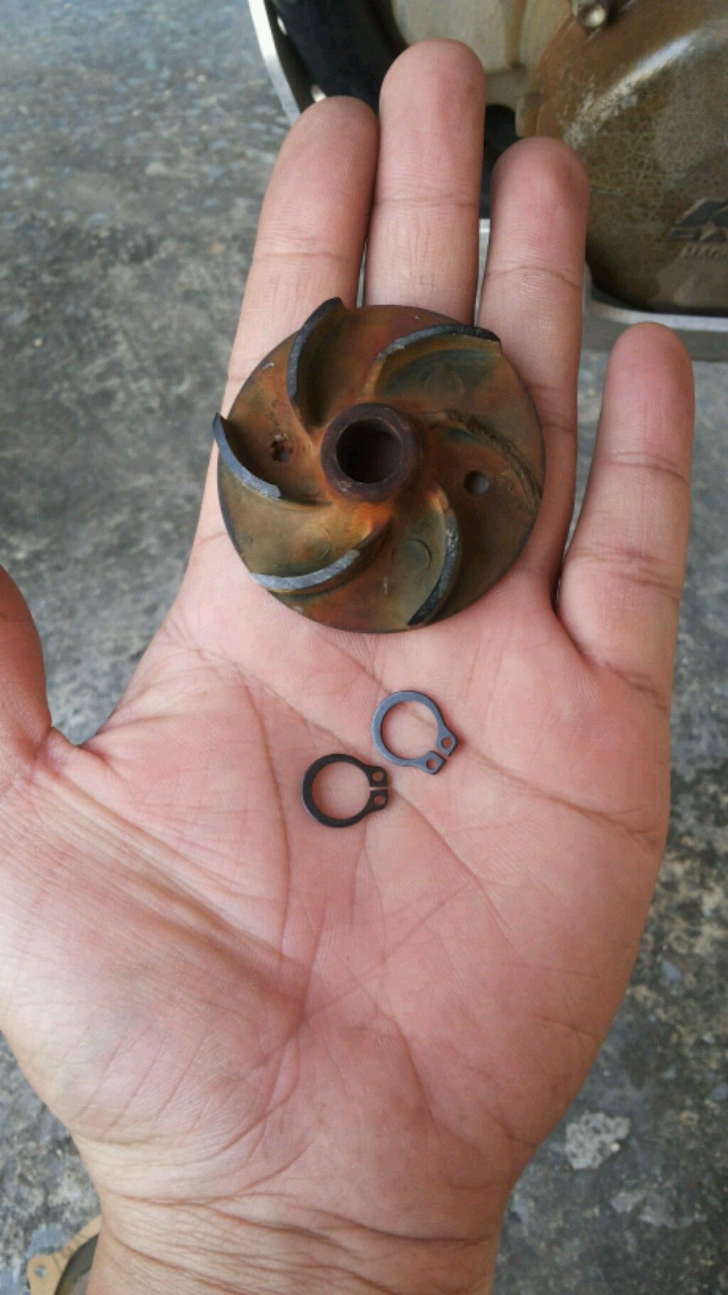 เอาใบพัดปั๊มน้ำไปเทียบเพื่อซื้อกิ๊ปที่ร้านขายน๊อตทั่วไป โชคดีที่มีของคับ อาจไม่ใช่ของ ktm แท้แต่แทนกันได้คคับ