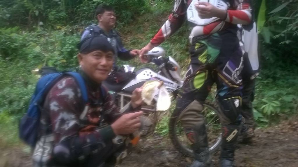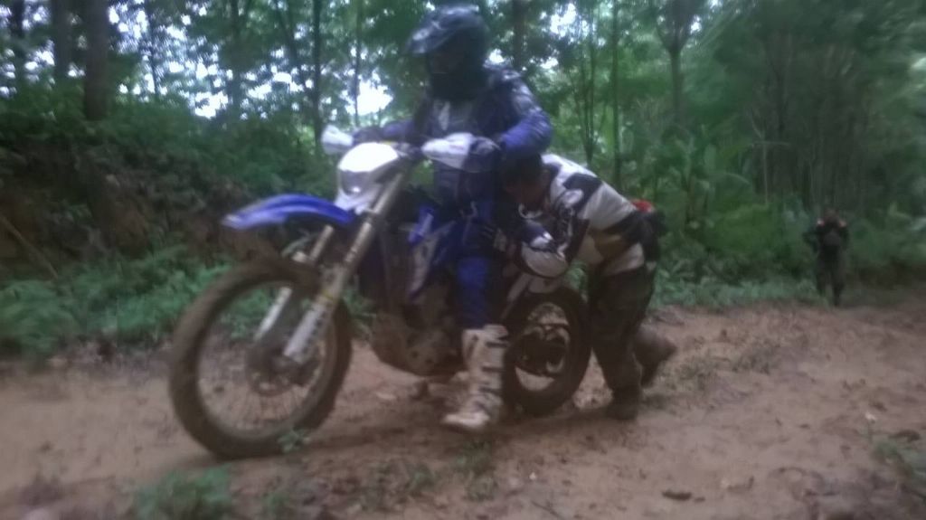น้านนท์ WR 450 ยกมือเกาหัว แกรก ก่อนจะประเมิน สถานการณ์ จาก คำบอกเล่า ของเส้นทางข้างหน้า จาก ยี่ห้อฯ ktm. (ที่มันเป็นทั้งตากล้องและคนนำทาง) ว่า ยังขึ้นมาได้ ไม่ถึงครึ่งทาง ของทั้งหมดเลย !.........