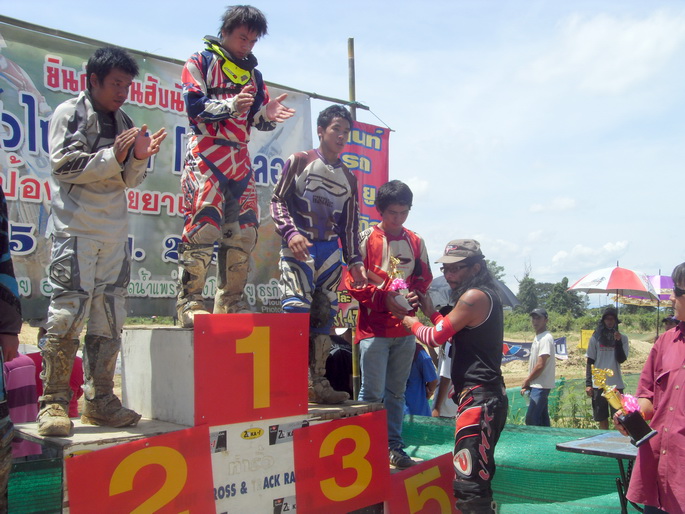 ถือโอกาสนี้ฝากไปยังผู้จัดการแข่งขันสนามแม่โจ้และสนามในคราวหน้าด้วยครับ รุ่น 50 ซีซี คัดแยกให้หน่อยนะครับ ให้เด็ก 50 ซีซีได้แข่งขันกันบ้าง อย่าให้ KLX ลงมาแข่งร่วมเลยครับ เพราะรุ่น KLX ก็มีให้ตั้งสองรุ่นแล้ว ให้โอกาสเด็กใหม่ได้มีกำลังใจกันบ้างครับ มีกี่คันก็ให้เค้าแข่งกันไป เฉพาะ 50 ซีซีนะครับ