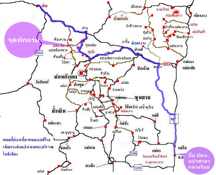 ( งานนี้ไม่มีรถปิคอัฟเซอร์วิส) เมื่อพร้อมแล้ว ออกเดินทาง ตามเส้นทางสีน้ำเงิน กินข้าวมื้เที่ยงที่บ้านป่าแป่