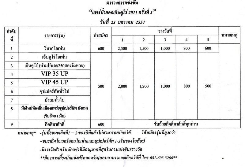 มือใหม่ท้องถิ่นแพร่ ( ถ้วย 15 ใบ ) 2000 1200 1000 800 500 500