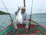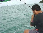 รอก finnor ของผม ก็ถูกปลากระชากอีกครั้งเป็นครั้งที่ 2 ไต๋ต่อที่ยืนอยู่หัวเรือรีบคว้าคันขึ้นมาวัดฉับก่อนที่จะยื่นคันส่งให้ผมอัดต่อ