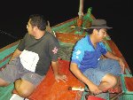 4 คน ช่วยกันนั่งตกหมึกขึ้นมาได้หลายตัว ยิ่งดึกเท่าไร หมึกยิ่งเยอะเราได้หมึกมากพอเพียงสำหรับที่จะออกไปต่อกรกับ