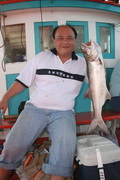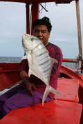หมายแรกของค่ำคืนนี้ คงหนีไม่พ้นปลาสาก ที่มีอยู่ดาษดื่น ในละแวกเกาะไผ่แห่งนี้ สายหน้าลวดเป็นขนาด 40 ปอนด์ผูกด้วยตะขอเบ็ด ทรงก้านยาวขนาด 2/O จำนวน 2 ขอ ผูกมัดห่างกัน ประมาณ 1 นิ้วครึ่ง หมึกตายในกระจาด นำมาวางไว้เตรียมพร้อม สะดวกแก่การหยิบจับ เพราะเรือลำนี้ นักตกปลาจะต้องช่วยเหลือตัวเองมากกว่าเรือลำอื่น จะมาร้องให้เด็กเรือช่วยหยิบโน้นจับนี้คงจะยากเสียหน่อยเพราะบางครั้งอาจไม่มีเด็กเรือลงเรือไปกับเราเลยสักคน พวกพี่ๆ จากจุดไดน์หมึกมายังกองปะการังเทียมระยะทางห่างกันไม่มากนัก ใช้เวลาเดินทางเพียงไม่นาน ก็มาถึงแล้ว บรรดาพี่ๆ ที่นอนพักเอาแรงตั้งแต่ยังไม่ครอบอวนยังนอนหลับกันสบาย ไม่มีใครตื่นมาตกปลากันสักคน “เอ๊ะ มันชักจะยังไงกันอยู่นะ ไต๋เปี๊ยก ไม่มีใครตื่นมาตกปลาสากกันเลย” นายชนบท พึมพำเปล่งเสียงในลำคอ “นู้น คันโน้นมากินแล้ว อย่ามั่วพูดอยู่เลย เอ้าเร็ว มันดึงคันโง้งแล้ว” ไต๋เปี๊ยก กล่าวพร้อมชี้นิ้วไปยังคันเบ็ดที่ปักอยู่กาบซ้ายเรือที่ออกอาการโค้งคำนับ ‘หงึก หงึก หงึก’ อยู่นั้นแหละ เจ้าแป๊บที่อยู่ใกล้คันกว่าใครรับหน้าที่มือสังหาร จัดการเผด็จศึก ทันที ไม่นานนักปลาสากเหลือตัวขนาดขอมือก็ทะลึ่งพรวดขึ้นมาให้ไต๋เปี๊ยกสับตะขอยกขึ้นมานอนดีดดิ้นบนพื้นเรือ ก่อนจะแปรสภาพเป็นข้าวต้มปลาสากในวันรุ่งขึ้น หลังจากปลาสากตัวแรกโดนสำเร็จโทษ ด้วยตะบอกเผ่นกระบานไป 2 โป๊ก ก็ไม่มีปลาอะไรเข้ามาข้องแวะ ทักทายพวกเราอีกเลย เวลาก็เหลืออีกหลายชั่วโมงกว่าท้องฟ้าจะสว่าง “ป่ะไต๋เปี๊ยก ขับเรือไปจอดนอนที่หมายกุเรากันเลยดีกว่า ปลามันก็ไม่กินแล้ว เสียเวลาเปล่าๆ” นายชนบทเสนอ ไต๋เปี๊ยก ก็สนองตอบ