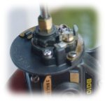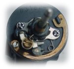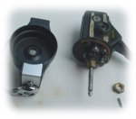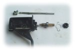 ตัวออก เราจะเห็นแผ่นแขนโยก เป็นรูปวงรี ที่จะทำหน้าที่ ชักแกนสปูนให้เคลื่อนที่เข้า