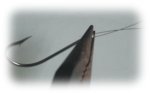 ต่อไปเป็นก่รเข้าเบ็ดตัวที่ 2 ด้วยสายรีดลวดเป็น ให้ร้อยสายลวดเป็นเข้าที่ห่วงเบ็ดดังรูป