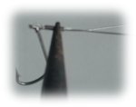 ให้ใช้คีม จับที่ห่วงเบ็ดดังรูปแล้วบิดปลายลวดให้ตีเกลี่ยวขึ้นมาเป็นรอบๆ