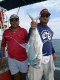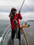 เป็นตัวอย่าง จึงพิถีพิถัน อัดปลาด้วยความระมัดระวัง ในที่สุดปลาช่อนทะเลขนาด ตัวเขือง ก็เหินลอยสู่คมตะขอของไต๋แจ๋ เย้..... วู้..... ตูไม่แห้วแล้ว โว้ย นายหมูฮิเล็กแสดงความดีใจ ทันทีที่ปลาช่อนตัวใหญ่
