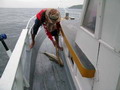 ถูกเกี่ยวขึ้นมาบนเรือ นาทีแห่ง ความโกลาหล อุบัติ ขึ้นแล้ว ทั้งนายหนุ่ยบึงราญ น้องสาม และนายไก่ก่อสร้าง สลับกันอัดปลาช่อนทะเลกันถ้วนหน้า จนน้ำหยุดไหล ปลาก็หยุดฉวยเหยื่อ กัปตัญแจ๋ เริ่มมองหา