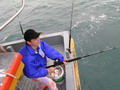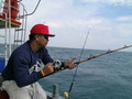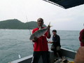 ไปหย่อนลงน้ำ ตามทำเลที่แต่ละคนได้เลือกกันไว้ ดังเช่น พี่บะหมี่ ที่ปลีกวิเวก ตัวเองไปหย่อนเหยื่อ นั่งตากแดด ที่หัวเรือ แหม เดี๋ยวนี้ เป็นเสือปืนไว ไปแล้วนะพี่ หมายนี้พี่บะหมี่เราลงเหยื่อเป็นคนแรกเลยนะพี่