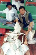 หลังจาก แอ็คชั่น ถ่ายรูปกับกองปลา