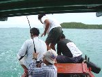 รอก finnor ของผม ก็ถูกปลากระชากอีกครั้งเป็นครั้งที่ 2 ไต๋ต่อที่ยืนอยู่หัวเรือรีบคว้าคันขึ้นมาวัดฉับก่อนที่จะยื่นคันส่งให้ผมอัดต่อ