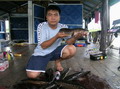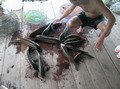 เลยนะเฮีย สวัสดีครับ เฮียคิมเมื่อเห็นแขกที่มาเยือนเป็นใครถึงกับหัวเราะร่า ว่าแล้ว ป๋าโยต้องตามมา เจ๋งครับวันนี้ผมได้มาอีก 3 ดูผลงาน สะก่อนมันส์จิง ว้อย เฮียคิมลูกลาดกะบังตกผลงานปลาช่อน ขึ้นโชว์ แต่ละตัวมีขนาดใหญ่ ทั้งนั้น ไม่นานนัก หมูฮิเล็ก ก็กลับมาถึงแพเป็นคนสุดท้าย อ้าว พี่โย