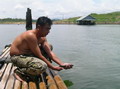 ไถลตัวเลื่อนลงน้ำ โดยที่ไม่อาจจะทำอะไรได้ กลับที่พัก ไม่ตงไม่ตก มันแล้ววันนี้ นั้นคือคำสั่งที่เฉียบขาด สายตาที่เหือดแห้ง มองดูปลาช่อนตัวเท่าลำแขน 2 ตัว ในใจคิดนึกปลง อนิจจัง ถ้าเอาปลาตัวเท่านี้กลับไปยังแพที่พัก อาจจะต้องโดนถูกเพื่อนๆ ถากถาง เมื่อคิดได้ดังนั้นเขาจึงจับปลาช่อน