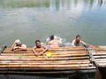 เสียงทักทายจากตาเหน่งผู้เป็นเจ้าของแพพัก กล่าวสวัสดีทันที่ที่เรือหางยาว แล่นมาถึง สาหวัดดีครับน้าเหน่งเช้านี้ขอข้าวต้มปลากดคัง ร้อนๆ ดีกว่า เออ ขอกาแฟ สัก 4 ชุดก่อนนะ เฮียคิมกล่าวกับตาเหน่ง ก่อนจะหันหัวเรือมายังแพ ที่พัก ขนของลงไว้บนแพ