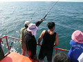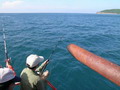 การตามหาปลาเกมส์ ตัวที่ 5 และตัวต่อไปยังต้องดำเนินต่อไป เราอยู่เฝ้าหาปลาโฉมงาม และปลาสละ ต่อไปจนตะวันบ่ายคล้อย ก็ไม่มีวี่แวว ของมันโผล่มาให้เราได้ยลโฉมเลยสักตัว ไต๋ยอช์ต จึงตัดสินใจ ย้ายเรือไปหาปลาอังเกย ที่หมายปะการังเทียม แต่เราก็คว้าน้ำเหลว ไม่มีปลาอังเกย ตามที่เราคาดคิด ป่ะ ไต๋ยอช์ต ไปเฝ้า โฉมงามที่ยุ่งเกลือดีกว่า ไต๋ยอช์ต จึงขับเรือแล่นสู่ยุ่งเกลือ และที่แห่งนี้ ที่ทำเอาพวกเราเสียวจุกท้องน้อยกันทุกคนเมื่อ เครื่องเรือ สตาร์ท ไม่ติดเรือเราเสีย จอดอยู่กลางร่องเดินเรือสมุทรลำใหญ่ ซึ่งไม่สามารถรู้ชะตากรรมของตัวเองเลยว่า ถ้ามืดค่ำลงเมื่อไหร่ เราจะโดนเรือลำไหนพุ่งชน มันไม่อยากจะคิด เพราะขนาดยังไม่มืด เรือบรรทุกน้ำมันยังวิ่งดิ่งตรงมาหาเรือพวกเราเลย โบกผ้าขาวไว้ ยวน โบกไว้ มันจะได้เห็นเรา นั้นคือคำของไต๋ยอช์ต ที่สั่งน้ายวนให้ทำหน้าที่โบกผ้าขาวแสดงจุดที่เราอยู่ การดินร่นร้องเรียกความช่วยไปถึงเรือลำอื่นจึงเกิดขึ้น การวิทยุขอความช่วยเหลือ ไร้ผล ไม่มีเรือลำไหน ขานตอบเสียงเรียกของเรือเราเลย โทรศัพท์มือถือจึงเป็นหนทางเดียวที่เราจะติดต่อกับเรือลำอื่นได้ และเราก็โชคดีที่ติดต่อกับ ทีม VR ไต๋ทานได้สำเร็จและได้รับการช่วยเหลือ โดยมาลากเรือเราให้หลบพ้นเส้นทางอันตราย นี้ไปก่อน