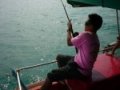 เหยื่อหมึกเป็นตัวแรกก็ถูกหย่อนลงทางด้านท้ายเรือ
