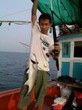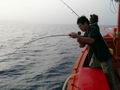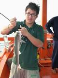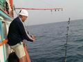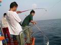 ผมอาสาเป็นมือตะขอเกี่ยวปลาขึ้นเรือ พอผมเกี่ยวปลาขึ้นมาบนเรือเสร็จ ตัวเบ็ดก็หลุดออกจากปากปลาทันที