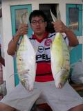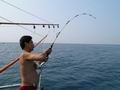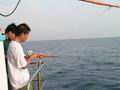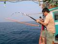 ฝูงปลาสาก คันเบ็ดโค้งง้อ แสดงว่าทั้งคู่กำลังราวีอยู่กับปลาสากแน่แล้ว เอ้า