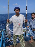 3 คนไปอีกนาน เราได้ปลาโอ ไซส์ เกือบ 4 กิโลจากการลากเหยื่อปลาบินเพิ่มมาเป็นอาหารอีก