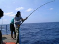 เสียงร้องจากรอกที่เกี่ยวปลาโอ ก็แผดเสียงดังลั่นจนแสบแก้วหู พี่ใหญ่คว้าคันขึ้นมาวัด