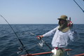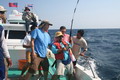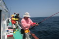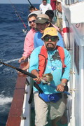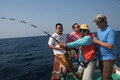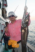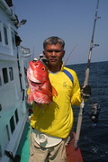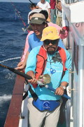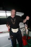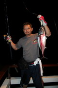 ดวงตะวันเริ่มคล้อยตัวลงต่ำลงไปทุกที หลังจากพลาดหวังกับโทฟี่ ชิ้นใหญ่ไปมาดๆ วงสนทนาต่างกล่าวขวัญ ถึงวีรกรรมที่พึ่งผ่านไปสดๆ ร้อนๆ เรือ Ocean One Ranong ยังคงแล่นต่อไปข้างหน้า จนกระทั่งตะวันลับฟ้าความมืดเข้ามาแทนที เวลาเดินผ่านไป นานแสนเท่าไหร่ไม่อาจรู้ได้ จนกระทั้งเรือแล่นมาถึง หมายตกปลาตรงเวลาตามที่ไต๋นุบอกไว้ สมาชิกเริ่มทยอยโผล่ออกมาจากห้องแอร์ ก่อนจะไปคว้าอาวุธประจำกายของใครของมัน แล้วนำเหยื่อ Jig ไปอาบแสงไฟก่อนจะทิ้งดิ่งสู้ก้นทะเล ปลาเข้าจอแล้วครับพ่อแม่พี่น้อง เชื้อปลาอยู่ที่ 50 เมตรขอรับ นายเก๋ป่าวประกาศระยะตำแหน่งปลาตามที่ Sounder จับพบให้สมาชิกทราบ อ้าว อ้ายเอก เอ็งเอาแล้วเร๊อะ อารายของมันว่ะหย่อนปุ๊บกินปั๊บเลยรึวะเนี่ย โกเพชรที่ยื่นหย่อนเหยื่ออยู่ข้างๆ กล่าวออกมาด้วยความอิจฉา อุ๊บ ข้าก็เอาแล้วเหมือนกันแล้วโว้ย อุ อุ อุ อย่าดิ้นนักสิวะ โกเพชรตะโกนออกมาด้วยความสะใจ เวลานี้ไม่ว่าจะเป็นนายเคี้ยง พี่หมูโอเชี่ยน บังเลาะ หรือกอล์ฟ กำลังนัวเนียอัดปลากันให้วุ่นวายไปหมด ในขณะที่นายเก๋ยังคงเป็นเนวิเกเตอร์คอยรายงานเชื้อปลาอยู่เป็นระยะ วู้ เชื้อเต็มจอแล้วครับเจ้านาย ไม่ดูไม่เดอมันแล้วไปตกปลามั่งดีก่า นายเก๋กล่าวจบก็กระโดเข้าวงมาร่วม แจม คว้าคัน ขึ้นมากระดก งึก งึก ไม่ทันไรคันก็โค้งงอ เอ้า ติดแล้ว ท่าทางจะเป็นเยลโลฟินสะละม้างตัวนี้