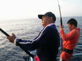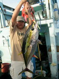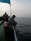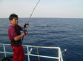 อุ๊บ ! นี่แนะ อยู่ หนักดีโว้ย ตัวนี้ พี่ซิงทำปากขมุบขมิบ มีเสียงเล็ดรอดพอให้ได้ยิน ไม่กล้าเอ่ยปาก ส่งเสียงดังเพราะเกรงว่าจะโดนเพื่อนที่นั่งอยู่ข้างๆ อิจฉาเอาได้ อารายเนี่ย นี่มันอารายกาน เล่นไป แล้วรึพี่ซิง พี่ชาญยังกล่าวยังไม่ทันจะจบประโยค ก็โดนปลางาบเหยื่อเข้าให้ เอ้า อุ๊บ ผมโดนเข้า ให้เหมือนกันแล้ว ฮ่ะ ฮา ! ปลาที่หิวกระหายเมื่อมีเหยื่อตกลงมาอยู่ตรงหน้า มีหรือที่มัน จะเบือนหน้า ปฏิเสธ โอ้โห ปลากินเหยื่อรอบลำเลย ยกเว้นพี่ใหญ่ คนเดียวที่ปลามันยังเมิน เสียงกระเซ้า เหยาแหย่ ดังขึ้น อุแหม่ มาแซวเรา ของผมมันประเภท เล็กๆ ไม่ ใหญ่ๆ มาเลย พี่ใหญ่พูดจบ ปลายคันก็มีแรงกระชากอย่างรุนแรงทันที โอ๊ะ โอะ โน มายก๊อดดด ของผมโดนแหลกแล้ว พี่ใหญ่ร้องออกมาด้วยความดีใจก่อนจะตวัดคันเสียงดังหนักแน่น ตึ๊บ ' ปลายคันสะท้อนแรงต้านอันหนักหน่วงขึ้นมาทันที ปลานกกระจอกตัวยาวคืบกว่า ตัวที่คุณโยจับได้นั้นแหละ ผมเอามาเกี่ยวเบ็ด ปลาที่จะมางาบมันได้ตัวจะใหญ่ขนาดไหนลองนึกดูดิ 50 โลอัพ แน่ๆ ตัวนี้ พี่ใหญ่ ได้ทีปล่อยกุ้งฝอยออกมาสะเต็มลำเรือ โอ้โห 50 โลเลยรึพี่ นายวิทยา ถาม อื่ม แน่นอน 50 อัพแน่ๆ ตัวนี้ พี่ใหญ่ยังคงกัดฟันหน้านิ่วคิ้วขมวดโน้มคันงัดปลา จนเวลาผ่านไปพักใหญ่ เจ้าตัวปริศนาก็ยอมลอยตัวขึ้นมายังผิวน้ำ สงสัยมันจะต้านน้ำมากไปหน่อยตัวมันเลยหดเหลือแค่ 8 โล ฮ่า ! นายวิทยาเอ่ยปากแซวทันที ที่ปลาแดงเขี้ยว มันปรากฏตัวให้เห็น มีปลานกกระจอกอีกมั๊ยครับ ขออีกสักตัว ผมจะเอาไปเล่นของใหญ่ให้มันสะใจไปเลย