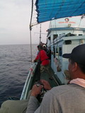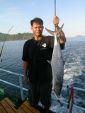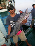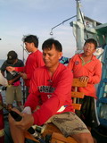 ความเดิมจากตอนที่แล้ว พี่ชาญ ลากปลาสาก ในดินแดนพม่ามา 1 ตัวจากการ Trolling ด้วยเหยื่อ Jet สีชมพู ฮะ ฮ่า เสร็จเราจนได้ ไอ้ตัวนี้มันขึ้นมาทันเวลาอาหารเที่ยงพอดี เอ้า เอาไป ต้มยำสะเลย พี่ชาญกล่าวด้วยความดีใจกับปลาตัวแรกในทริบนี้ เราจะถึงที่หมายกี่โมงครับไต๋นุ พี่ใหญ ่เอ่ยปากถามไต๋ ประมาณ 3 ทุ่มครึ่ง ครับ นอนยาวกันได้เลย ไต๋นุตอบ ในขณะที่เรือ Ocean One Ranong ยังคงเดินหน้ามุ่งสู่จุดหมายต่อไป อีกนานหลายชั่วโมงกว่าจะถึงที่หมาย กิจกรรม ของ คณะนักสำรวจ กลุ่มนี้ คงไม่มีอะไรดีกว่าการนอน อย่างที่ไต๋นุแนะนำ ในขณะบางคน หัดฝึก วิธีการ ผูกเงื่อนต่างๆ จาก น้าป้อฟิชฟรีเวอร์ ที่คอยเป็นครูแนะนำเทคนิค การผูกเงื่อน ต่างๆ จวบจน กระทั่งเรือ Ocean One Ranong เดินทางมาถึงหมายดอนเหนือเมื่อเวลา 3 ทุ่มครึ่งตามที่ไต๋นุบอกไว้พอดี เย้ ... ถึงสะที นอนจน หลังบี้หลังแบนหมดแล้ว ป่ะ ลุย เสียงตะโกนด้วยความดีใจของคณะสำรวจ เมื่อเรือเดินทางมาถึงที่หมาย เอ้า ใครใคร่จิ๊ก ก็จิ๊ก ใครใคร่ใช้เหยื่อสดก็เชิญกันตามสะดวก สิ้นเสียงนายชนบท สมาชิกทุกคนรีบคว้าอาวุธของใครของมัน ที่จัดเตรียม ผูกเหยื่อจิ๊กหลากหลายสีไว้เรียบร้อยก็นำไปหย่อนลงน้ำ ยกเว้นแต่พี่ซิง พี่ชาญ และพี่ใหญ่ ที่ขอใช้เหยื่อสด ประเภทหมึกตาย กับปลาทูแขกที่ซื้อมาจากตลาดเกี่ยวเบ็ดลงไปล่อปลาแทนเหยื่อจิ๊ก ความลึกเท่าไหร่ ครับไต๋ พี่ชาญถาม ไต๋นุเหลือบตา ไปมองจอ Sounder แล้วตอบออกมา น้ำลึก 50 เมตร ครับ มีเชื้อปลาอยู่ที่ 40 เมตรนะครับ ไต๋นุตอบ ค่อยยังชั่วหน่อย น้ำไม่ลึกมาก พี่ซิง เปรยออกมา ก่อนจะพูดตัดบทออกไปว่า เอ้า อย่ามัวโอ้เอ้ กันอยู่เลย รีบลงเบ็ดสะเร็วๆ โน้น นายไก่ก่อสร้าง งัดปลาจนคันโกร่งแล้วนั้น ทุกคนหันขวับไปยังนายไก่ก่อสร้าง ที่กำลังอัดปลาเปิดอยู่ข้างเรือ เฮ้ย....อารายว่ะ มัวแต่ฝอยโดนนายไก่ก่อสร้าง ตัดหน้าไปสะแล้ว ยอมไม่ได้ ต้องรีบทำแต้มไล่ พี่ใหญ่ พูดจบ ก็หย่อนเบ็ดลงน้ำ เสียงตะกั่ว กระทบน้ำเสียงดัง จ๋อมมมมม !'