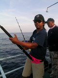 และเมื่อเรือวนมาถึงชายขอบดอนวาฮู ที่ระดับน้ำลึก 105 เมตร สิ่งที่พี่ชาญ รอคอยก็มาถึง เสียงรอก ของน้าไก่เซียนตกน้ำ ร้องดังสนั่นกว่าทุกครั้งที่ผ่านมา แปร๊ดดดดดดดด ' พี่ชาญเอาเลยคิว ของพี่แล้ว เล่นเองเลยพี่ นายชนบทตะโกนบอกพี่ชาญให้เล่นเอง อึ๊บ ตายห่ะ ทำไมมันหนัก อย่างนี้วะ พี่ชาญสบถ ออกมาพึมพำ เฮ้ย ซวยแล้วตู ตูซวยแล้ว ไอ้ตัวที่กระโดด อยู่โน้นรึเปล่าวะ พี่ชาญกล่าวอย่างตกใจกับภาพปลากระโทงแทงตัวใหญ่ ที่กระโดดสบัดงวง ทำหัวฟัดหัวเหวี่ยง อยู่ไกลออกไป ไม่ใช่ตัวนั้นหรอกพี่ อย่าไปพะวงมันอัดไปเลย น้องๆ ช่วยส่งเสียงเชียร์ อ๊าคคคคคส์ งัดไม่ได้เลย สายเอ็นในรอกยังคงไหลออกไปเรื่อยๆ อย่างไม่มีทีท่าว่าจะหยุด ในขณะที่ พี่ชาญออกแรงงัดคันอยู่นั้น ก็ปรากฏเรือนร่างขนาดมหึมาของปลากระโทงแทง ข้างท้ายเรือ ทางซ้ายมือ มันกระโดดสะบัดงวงของมันห่างจากเรือไปไม่เกิน 30 เมตร ทุกคนที่ได้เห็นขนาด ความใหญ่โตของมัน อย่างถนัดตา โดยเฉพาะพี่ชาญ ก็เกิดอาการตกตะลึงขวัญแตกกระเจิง ทำอะไร ไม่ถูก บางคนได้แต่ส่งเสียงพึมพำ ผ่านลำคอออกมาว่า อู้ หู โคตรใหญ่จริงๆ เกิดมาจากท้อง พ่อท้องแม่ ก็พึ่งจะเจอนี่แหละ บางคนก็ได้แต่อ้าปากค้าง แต่สำหรับพี่ชาญ แล้วได้แต่ส่งเสียง ออกมาว่า ไอ้ตัวนี้แน่ๆ เลย ซวยแล้วตูงานนี้ นายชนบทพอตั้งสติได้ ก็ร้องบอกให้พี่ชาญรีบกรอสายทันที พี่รีบโน้มคัน กรอรอกด่วนเลยพี่ มันวิ่งย้อนสายมาตั้งแต่เมื่อไหร่ วะ พี่ชาญพยายามโน้มคัน แต่ก็ทำอะไรไม่ได้ ในที่สุดมันก็จากไป ฝากไว้แต่ภาพอันสง่างามของมันที่จะอยู่ในความทรงจำของคนที่เห็นไม่มีลืมเลือน หลุดไปเสียก็ดี ไปต่อเลยไต๋ ผมไม่อยากเจอกับมันเลยจริงๆ พี่ชาญกล่าวทิ้งทาย เรามาเจอสัตว์ประหลาดตัว ยักษ์ๆ หลายตัว แต่เราเอามันไม่อยู่สักกะตัวเดียว นายชนบทพึมพำ เหมือนกับยอมรับในความพ่ายแพ้