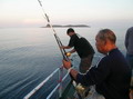 กิจกรรมลากสาย Trolling เป็นอันต้องยุติลงเมื่อความมืดมาเยือน ป่ะเก็บชุด Trolling กันเถอะสิ้นแสง อาทิตย์ปลาไม่ฉวยแล้วละ พี่ซิงบอก ป่ะไต๋นุ เดินหน้าลุยต่อไปเราได้ หมายนี้เราไขปริศนา ปลายักษ์ ในตำนานได้แล้ว กลุ่มนักสำรวจยังคงเดินหน้าเพื่อไขปริศนาต่อไป ยังที่แห่งใหม่ที่ ซึ่งอยู่ ห่างไกลจากจุดนี้ไปอีก 4 ชั่วโมง ที่นี่ด๊อกทูธตัวใหญ่ๆ เยอะ ครับ กะมงก็มี ไต๋นุกล่าว สมาชิกต่าง รีบโรยเหยื่อโลหะ ลงน้ำโดยเร็ว และนายไก่ก่อสร้าง ก็เปิดทริบ กระดกปลา ตัวแรก ขึ้นเรือเป็นคนแรก จากนั้นสถานการณ์ของนักสำรวจ บนเรือยามนี้ แต่ละคนกำลังชุลมุนวุ่นวาย กับฝูงปลากะมงตาเพชร โดยเฉพาะน้าป้อ ฟิชฟรีเวอร์ ที่งัดเอา งัดเอา คนเดียวงัดปลาเต็ม 2 ตะกร้าแล้ว ส่วนน้าหมึก บุรุษที่ เงียบขรึม ก็ใช่ย่อย แสดงพละกำลังด้วยการ Jigging งัดปลาจนเบื่อ เกิดนึกสนุกขึ้นมา ลุกไปคว้า ชุดตี Popper ออกไปยืนที่ หัวเรือ แล้วหวดคันส่งเหยื่อ Popper ออกไปจนสุดแรง ก่อนจะทำการ Jerk คันสร้าง Action ให้กับเหยื่อ ได้ไม่นาน ก็ปรากฏ เสียงดัง ตูม น้ำแตกกระจาย ห่างออกไปจากเรือประมาณชายแสงไฟ โอ๊ะ น้าหมึก ได้ปลาแล้ว ไม่น่าเชื่อ ตี Popper กลางคืน ก็ได้ด้วยแฮะ น้าไก่ เซียนตกน้ำ กล่าว เอ้า น้าหมึกได้อีกตัวแล้ว เผลอแพล๊บเดียว น้าหมึกหวดปลา ขึ้นมาเต็มตะกร้า อีกแล้ว เวลาก็เดินผ่านไป ความง่วงก็เข้ามาบั่นทอนความสนุก สมาชิก หลายคนเริ่ม ขยับละถือคัน หันหัวมุดเข้าห้องนอน ไปทีละคน 2 คน เป็นการเสร็จสิ้นภารกิจ การสำรวจดินแดนลึกลับสำหรับวันนี้ เราต้องเดินทางไปยังที่แห่งใหม่ในยามฟ้าสาง เราจะพาไป ยังหมายใหม่ พึงได้เบอร์ดาวมา ยังไม่เคยไปมาเลยครับพี่โย ไต๋นุกล่าวขณะที่มือหมุนพังงา บังคับเรือเคลื่อนตัวสู่หมายเบื้องหน้า
