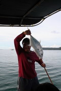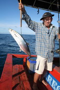 พี่เปี๊ยกกล่าวเสียงอ๋อย แล้วปลาก็หยุดฉวยเป็นไปตามที่เราคาดไว้ไม่ผิด ตะวันเริ่มคล้อยตัวลงต่ำ เวลาสำหรับวันนี้ใกล้หมดไป ไต๋พนธ์บังคับเรือสู่เกาะไม้ซี้ เพื่อตกปลาสากและหลับนอน อ้าวพี่เปี๊ยก