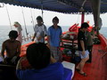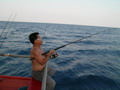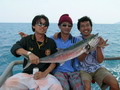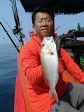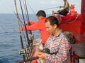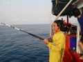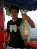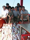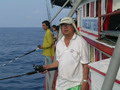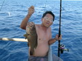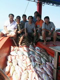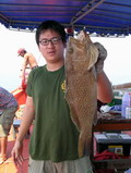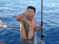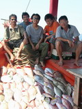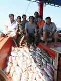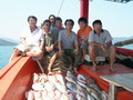 น้ำ 3 กระดอง หรือ นี่ไต๋ระ ผมถามไต๋ระ ใช่แล้ววันนี้เราเจอ ทั้งน้ำทั้งลม 3 กระดองหมด แฮะ แฮ่ะ สงสัยจะไม่ได้เรื่องแล้วหมายนี้ ไต๋ละกล่าวออกมาด้วยสีหน้าที่ยิ้มแย้ม แต่แฝง ด้วยความวิตก กังวล อย่างเห็นได้ชัด เอาน่ายังไงก็มาถึงหมายแล้ว มันก็ต้องหย่อนเหยื่อดูหน่อยละ ไม่งั้นมา เสียเที่ยว เปล่า ผมกล่าว ไต๋มะระได้แต่ยิ้ม ก่อนจะบอกให้จ๊ะเอ๋สาวสายสมอเรือขึ้นไปอีก 2 วา จากนั้น มหกรรม ส่งหน่วยกล้าตาย ก็อุบัติขึ้น พลพรรคนักรบต่างรีบคว้าอาวุธหนัก มาเกี่ยวหมึกกล้วย ตัวยาวคืบกว่า หย่อนลงน้ำ เสียงดัง จ๋อมแจ๋ม ไม่นานนัก ท้ายเรือก็เกิดเสียงเฮดังลั่น เมื่อหนึ่งในสมาชิกงัดเอาปลาเก๋าขนาด 4 โลขึ้นมาได้เป็นตัวแรก เฮ้ยมันกินเร็วขนาดนี้เลยรึ เสียงเจ้าเต้ร้องถามด้วยความงุนงง รีบๆ หย่อนสายเลยเต้ เดี๋ยวเรือปัดออกนอกหมายจะไม่ได้ตัวน่ะ ผมกล่าวกับนายเต้ จัมมัย และแล้วเหตุการณ์มันก็เป็นดังที่เราคิดไว้แต่แรก นั้นคือเรือเลื่อนหลุดออกนอกหมาย ปลาจึงหยุดฉวยเหยื่อ ทุกอย่างเงียบสงบแม้ไต๋มะระจะพยายาม เลื่อนเรือ สักกี่ครั้งมันก็ไม่เป็นผล จะมีก็แต่เฮียคิม ที่ได้ปลาทรายแดงยักษ์ หรือ อังคุลี ไซส์ 1กิโลกว่าขึ้นมาอีก 1 ตัว เราจึงตัดสินใจ เดินหน้าต่อไป หวังหมายข้างหน้าน้ำกับลมคงจะเป็นใจ