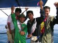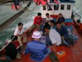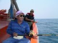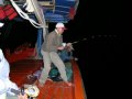 เราแล่นเรือมาจนแสงตะวันกำลังจะลาลับท้องฟ้า ความมืดกำลังจะคืบคลานมาสู่พื้นโลกอีกครั้ง เรือน้ำใจก็มาถึงหมายซากเรือ สมาชิกร่วมเดินทาง ทยอยตื่นจากการหลับพักผ่อน กันทีละคน 2 คน ก่อนจะปรี่ไปคว้าคันของใครของมันมายืนเข้าแถวรอ ให้เจ้าบังเกี่ยวหมึกให้ คนที่เกี่ยวหมึกเสร็จแล้ว ก็จะไปหาทำเล เลือกสมรภูมิ หย่อนก้นปล่อยเหยื่อ ลงสู่ก้นทะเล เพื่อนๆ ทุกคนลุกขึ้นมาตกปลากันเกือบครบทุกคน แต่ "เอ๊ะ! ใครเห็นเจ้าดนัยบ้างครับ เนี่ย" ผมถามนายดอกรัก เพื่อนที่ร่วมเดินทางมากับ ดนัย เมื่อรู้สึกว่าสมาชิกบนเรือ นั้นขาดหายไป 1 คน "ยังนอนอยู่บนชั้น 2 ตั้งแต่เมื่อคืนแล้วพี่ สงสัยจะยังไม่สร่างเมาเรือ ฮ่ะฮ่า! " นายดอกรักพูดไปหัวเราะไป "เอานี่ ส้มกับยาแก้เมาเอาไปให้ดนัยกินสะ จะได้ดีขึ้น" ผมบอกให้ดอกรักนำผลส้มกับยาแก้เมาไปให้ดนัยกิน ขณะที่เรากำลังเป็นห่วงน้องใหม่หนุ่มนครสวรรค์ที่ ลงเรือครั้งแรก ก็เมาเรือขี้แตกขี้แตนอยู่นั้น นายหน่อง ที่นั่งตกปลาอยู่หัวเรือ ก็พรวดพราดลุก ตึ้งตั๊งขึ้นยืน ทำเอาเพื่อนๆ ที่นั่งตกปลาอยู่ข้างๆ ตกใจไปตามๆ กัน "เฮ้ย! หน่องเป็นอะไร" พี่ซิงที่นั่งตกปลาอยู่ข้างๆ ร้องถามด้วยความตกใจที่เห็นนายหน่อง อยู่ๆ ก็ลุกพรวดพราดขึ้นยืนอย่างนั้น "ปลากินครับปลากิน แฮ่ะๆ โทษทีครับพี่ ที่ทำให้ตกใจ" เสียงนายหน่องตอบ ในขณะที่ปลายคันออกอาการโค้งงอ ในที่สุด หน่อง ที่ยืนอัดปลา งัดเอาปลาอังเกย ไซร์ ประมาณ 3 กิโล ขึ้นมานอนลิ้นจุกปลาในตระกร้าได้เป็นผลสำเร็จ ในขณะที่หน่อง กำลังอัดปลา อยู่นั้นปลายคันเบ็ดในมือของเจ้าขอนลอย ก็แสดงอาการกระดุ๊บ กระดุ๊บ พี่ซิงที่นั่งอยู่ข้างๆ และทำหน้าที่คอยเป็นพี่เลี้ยง ให้กับเจ้าขอนลอยพอเห็นปลายคันที่ แสดงอาการอย่างนั้น ก็ร้องบอกให้เจ้าขอนลอย ลดคันลงเพื่อเป็นการส่งสายให้มันก่อนที่คันจะโค้งวูบเพราะแรงดึง "วัดเลยขอน วัดคันก่อน" เจ้าขอนวัดคันตามที่อาจารย์ซิง บอกด้วยท่าทางเก้ เก้ กัง กัง "อยู่มั๊ยขอน" พี่ซิงถามย้ำ อีกที "อยู่ครับ พี่หนักอึ้งเลยพี่" ขอนลอยตอบ คันเบ็ดโค้งงอ ในที่สุดเจ้าขอนก็ดึงปลาอังเกยขึ้นมานอนอ้าปากหวอ ในตระกร้าได้สำเร็จ ตามหลัง เจ้าหน่องมาติดๆ ส่วนนายเข้ม กับนายเต้ ปลาแมนที่นั่งตกปลา เลือกทำเลทางท้ายเรือ ก็ดึงเอาปลาอังเกยขึ้นมาได้อีก คนละตัว 2 ตัว ส่วนนายสินกับเจ้าเอ้ รวมทั้งเฮียเล็กบางชัน ก็ไม่ยอมน้อยหน้าเพื่อนคนอื่น เมื่อช่วยกันทำมาหากิน งัดเอาอังเกยขึ้นมาเพิ่มประชากร บนเรืออีกคนละ ตัว 2 ตัว แม้แต่คุณคาเน่ย์ และนายดอกรัก ก็ดึงปลาขึ้นมาบนเรือจนถ้วนหน้า แต่เจ