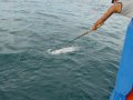 เดินไปอัดปลาที่หัวเรือ แต่ พอปลาเข้ามาใกล้เรือ พอได้เห็นเงาลางๆ เท่านั้น