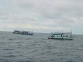 เกือบจะ 8 โมงเช้า บัดนี้ที่หมาย ซากเรือปูนเหมือนกับมีงานวัด เรือนักล่าปลาอินทรีจอดเรียงรายอยู่บริเวณนั้นถึง