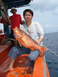 เจ้าเติ้ล ก็งัดเอาปลาสร้อยนกเขา ไซส์โต ขึ้นมาประดับเรือ ตามมาน้องสามที่งัดเอาปลาเก๋าไซส์
