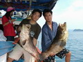 และก็ได้ปลาเก๋า ตัวขนาดกำลัง ขึ้นมา 3 - 4 ตัวแล้วด้วย ตี๋ใหญ่ นำเรือเข้าไปจอดเทียบข้างเรือไต๋โก๊ะ