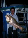 "มันกินหมึกตายครับ มันซัดเหยื่อผมไปตั้ง 4-5 ครั้ง สายขาดหมด ผมเลยเปลี่ยนมาเป็นลีดเดอร์ลวดลงไป
